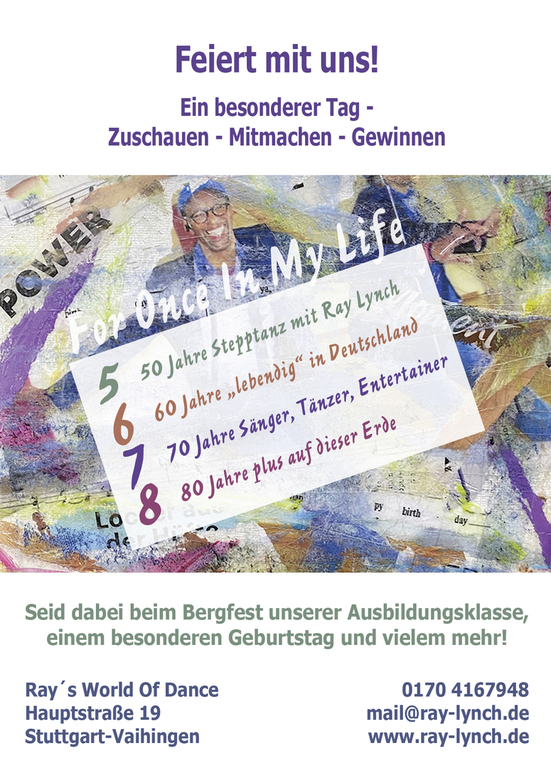 Steppen ist Ray Lynchs Leben. Der 80-Jährige ist noch immer fit wie ein Turnschuh. An drei Abenden pro Woche gibt er in seiner Tanzschule in Stuttgart Kurse in Stepptanz und Jazztanz. Sein Fitness-Rezept: ganz viel Bewegung und Sonne im Herzen.